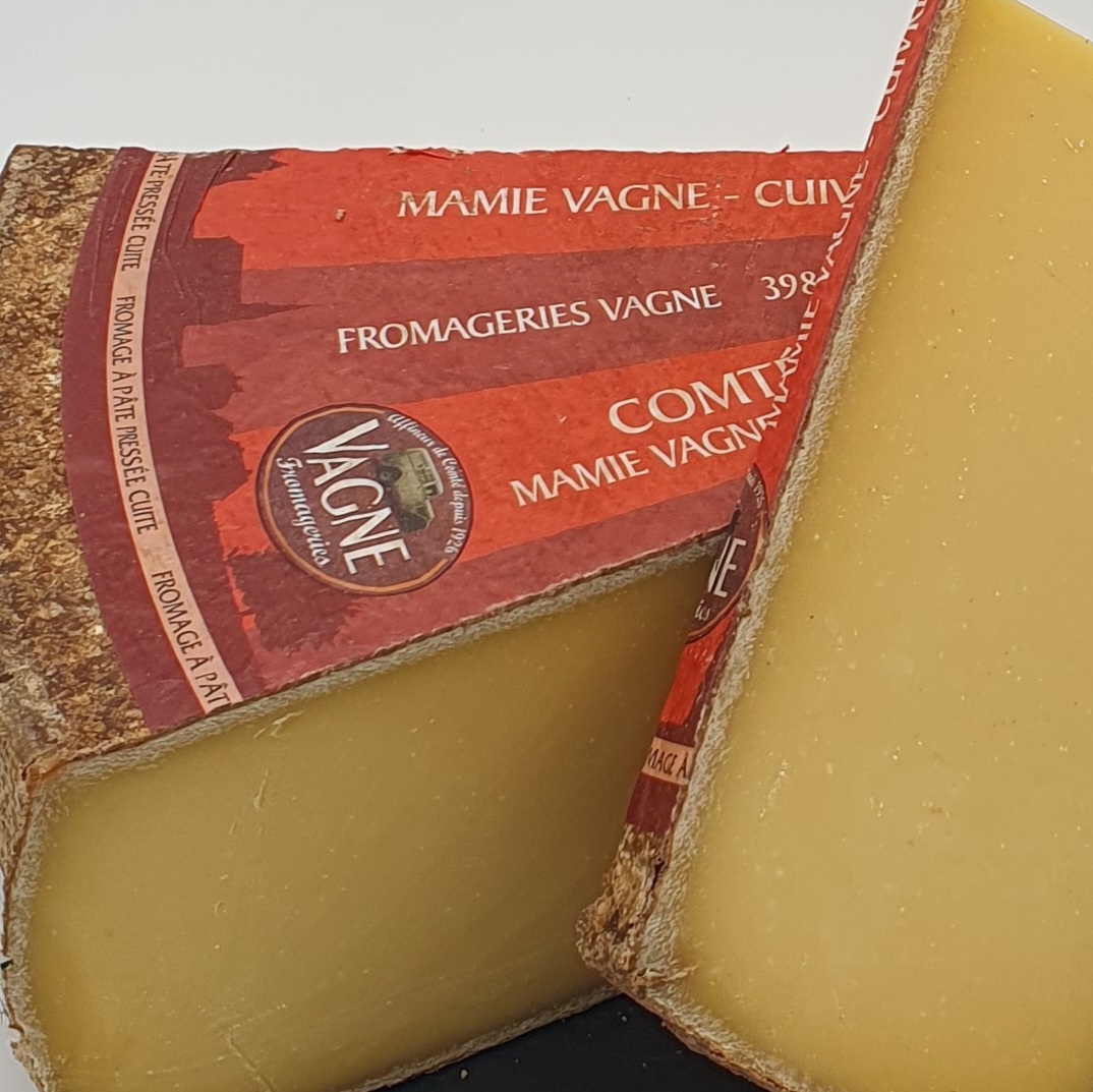 Le Comté 24 mois est un fromage à pâte pressée cuite, affiné dans le massif du Jura à partir de lait cru de vaches Montbéliarde ou Simmental française. Son long affinage lui confère une pâte ferme et granuleuse, de couleur jaune doré avec de petits cristaux de tyrosine. Son goût est puissant et complexe, avec des notes de fruits secs, de caramel et une touche épicée. Idéal en dégustation avec un vin jaune du Jura, il apporte également profondeur et intensité aux plats gastronomiques.