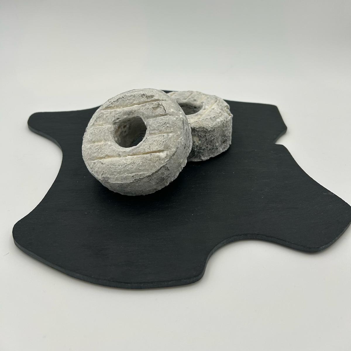 La Couronne de Touraine est un fromage de chèvre typique de la région du Val de Loire, particulièrement apprécié pour sa forme distinctive, ressemblant à une couronne ou un anneau. Fabriqué à partir de lait cru ou pasteurisé de chèvre, ce fromage à pâte molle et crémeuse offre une texture fondante et un goût doux, légèrement acidulé. Sa croûte naturelle, souvent blanche et douce, protège une pâte intérieure qui révèle des saveurs fraîches, légèrement herbacées et subtiles. La Couronne de Touraine est parfaite pour être dégusté sur un plateau de fromages, accompagné de pain frais ou de fruits. Il se marie bien avec des vins blancs secs comme un Sauvignon ou un Vouvray.